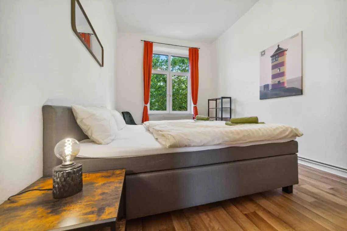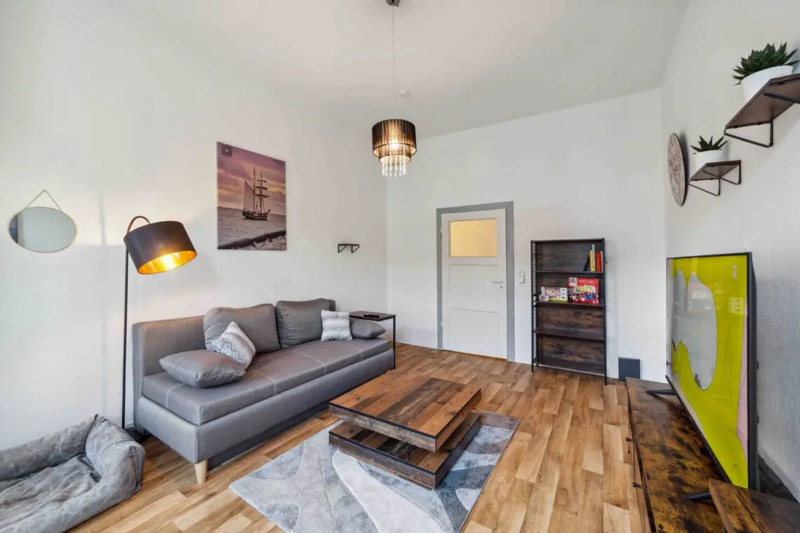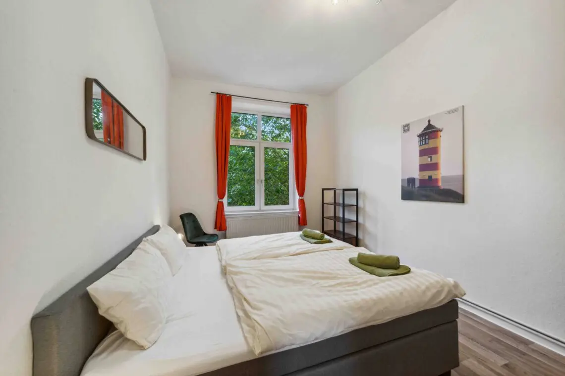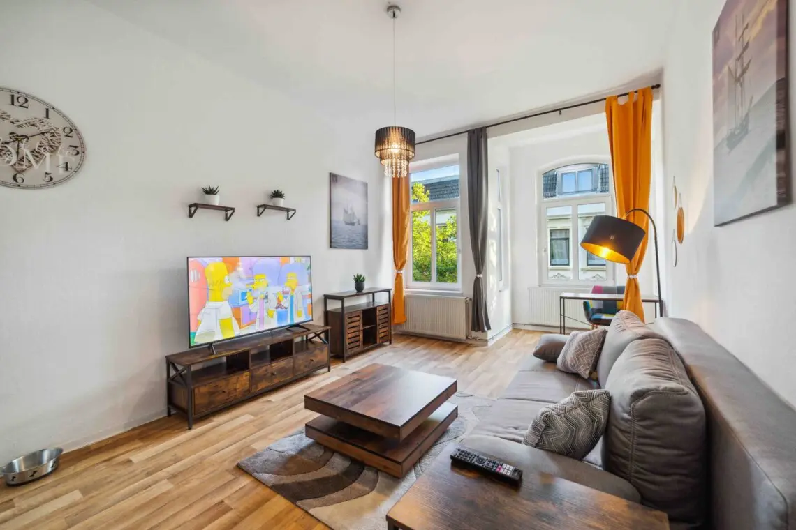 Sie betreten die Wohnung und befinden sich in einem großen, geräumigen Flur. Der Kleiderschrank bietet viel Platz für Ihre persönlichen Gegenstände. Links von Ihnen liegt das Wohnzimmer mit einem großen Schlafsofa und Netflix. Rechts vom Flur befindet sich das kleine, aber feine Badezimmer. Gleich links davon ist das Schlafzimmer mit einem 180 x 200 cm großen Boxspringbett. Gegenüber dem Schlafzimmer befindet sich die Küche, in der Sie kochen und Ihre Mahlzeiten genießen können. Wir stellen Ihnen alles Notwendige zur Verfügung, inklusive einer Kaffeemaschine mit hochwertigem Kaffee, die Sie selbstverständlich auch benutzen können.