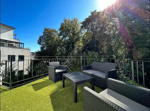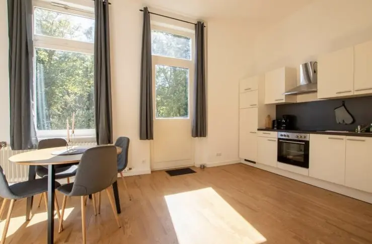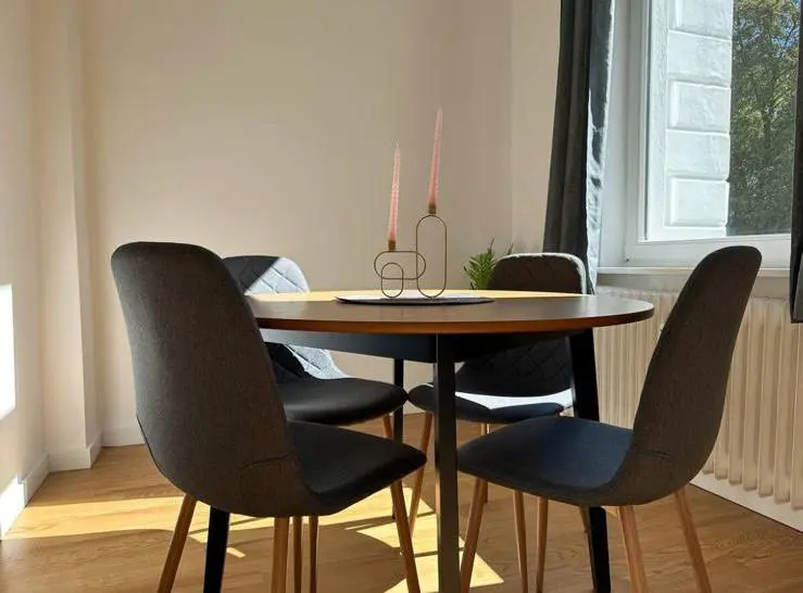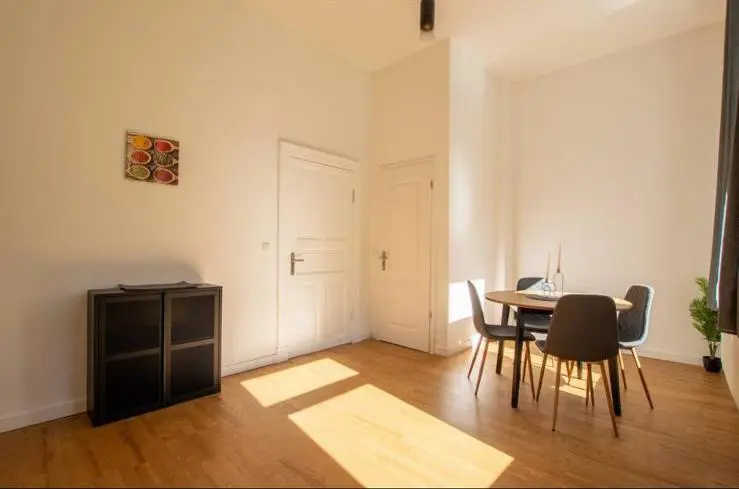 Dieses helle, moderne Apartment vereint historischen Charme mit zeitgemäßem Komfort. Hohe Decken, große Fenster und Holzböden schaffen eine luftige und einladende Atmosphäre.